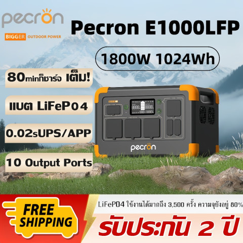 พร้อมลุยทุกสถานการณ์ไฟฟ้าดับ ท่องเที่ยว แคมป์ปิ้ง หรือทำงานนอกสถานที่ด้วย Pecron รุ่น E1000LFP Power Station 1800W 1024Wh แบตเตอรี่ LiFePO4 ความทนทานสูง ชาร์จเร็วภายในเวลาเพียงประมาณ 1.3 ชั่วโมง ให้กำลังไฟแรงและเสถียร รองรับอุปกรณ์ได้หลากหลาย ทั้งโน้ตบุ๊ก ทีวี ตู้เย็นขนาดเล็ก ปั๊มน้ำ และอุปกรณ์ไฟฟ้าอื่นๆ ได้อย่างมั่นใจ