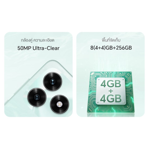 ด้านการถ่ายภาพ มาพร้อมกล้องหลังความละเอียดสูง 50MP เก็บรายละเอียดได้คมชัดทั้งกลางวันและกลางคืน ถ่ายภาพบุคคล ภาพวิว หรือภาพอาหารก็สวยโดดเด่น พร้อมโหมดถ่ายภาพอัจฉริยะที่ช่วยปรับภาพให้เหมาะสมอัตโนมัติ