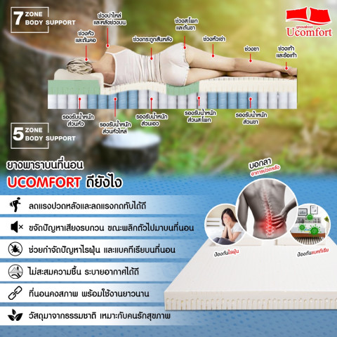 Nature Latex (ยางพาราธรรมชาติ) ช่วยรองรับแนวกระดูกสันหลังอย่างเป็นธรรมชาติ ลดแรงกดทับและช่วยบรรเทาอาการปวดหลัง อีกทั้งยังมีคุณสมบัติต้านไรฝุ่นและเชื้อราโดยธรรมชาติ