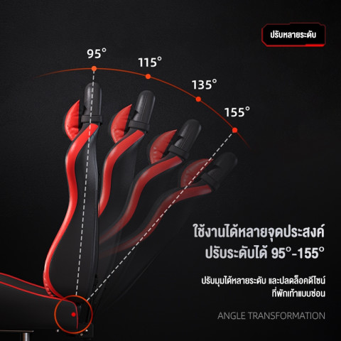 พนักพิงสามารถปรับเอนนอนได้ ประมาณ 135°–155° (ขึ้นกับรุ่น) ให้คุณเลือกโหมดการใช้งานได้ทั้ง: