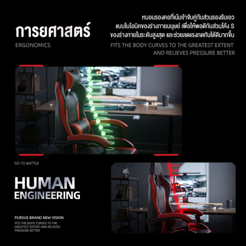 ดีไซน์เกมมิ่งสไตล์รถแข่ง สีดำแดง เท่และดุดัน