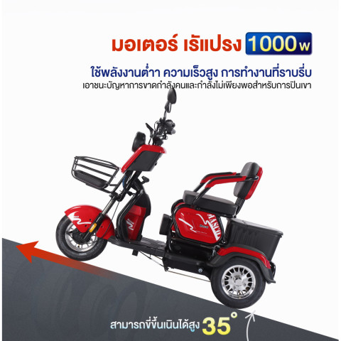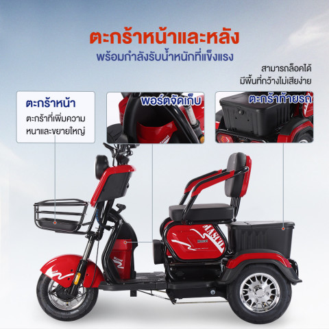 โครงสร้าง 3 ล้อมั่นคง ออกแบบให้ทรงตัวได้ดี ลดความเสี่ยงต่อการล้ม เหมาะอย่างยิ่งสำหรับผู้สูงวัยหรือผู้ที่ต้องการความมั่นคงขณะขับขี่