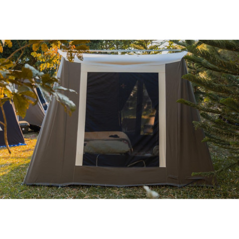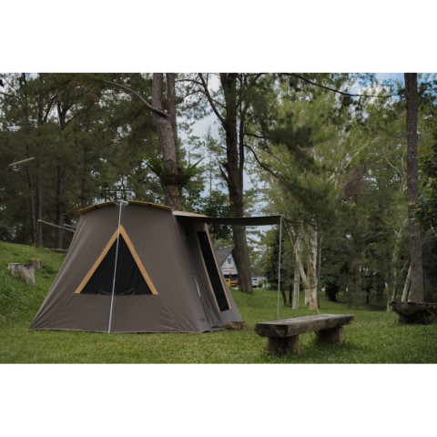 ผ้าหลังคาและผนังเต็นท์เป็นผ้าฝ้ายแคนวาสแท้ ช่วยให้ภายในโปร่ง ไม่อับ ระบายอากาศดี