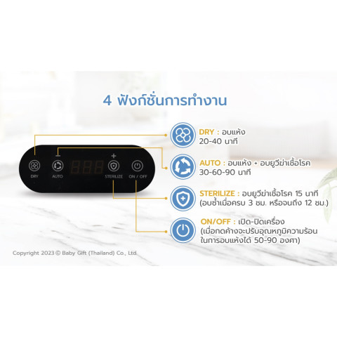 AUTO : อบแห้ง + อบยูวีฆ่าเชื้อโรค เลือกเวลาได้ 30/60/90 นาที