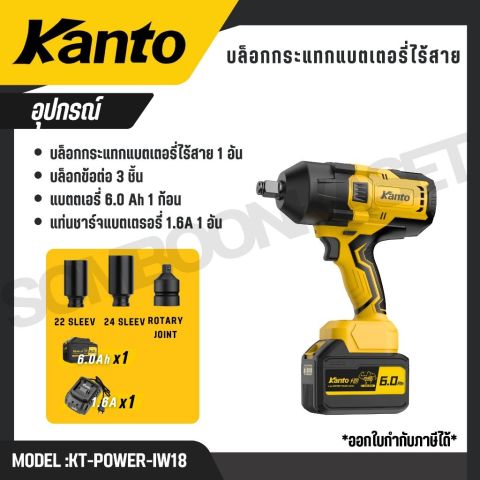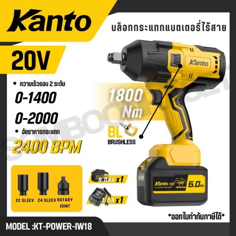 KANTO บล็อกกระแทกแบตเตอรี่ไร้สาย 3/4" 20V รุ่น KT-POWER-IW18 (IMPACT WRENCH) ราคา 6,590.00 บาท พลังแรงบิดจัดจ้านสำหรับงานขัน-คลายน็อตหนักแบบมืออาชีพ ใช้งานคล่องตัวด้วยระบบไร้สายและมอเตอร์ไร้แปรงถ่าน ให้แรงเต็ม ประหยัดพลังงาน และทนทานกว่า เหมาะกับงานช่างทั่วไป งานซ่อมบำรุง งานยานยนต์ และงานติดตั้งที่ต้องการแรงกระแทกสูง