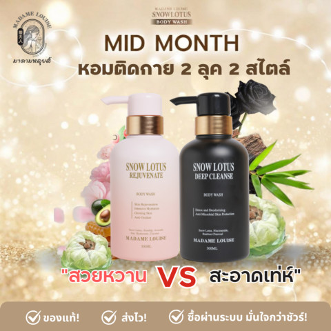 MID MONTH มาดามหลุยส์ : ผิวใส ออร่า หอมติดกาย กับชุดเซตดูแลผิวที่คัดมาให้ครบจบในชุดเดียว มอบผิวดูแลอย่างเป็นขั้นตอน พร้อมความหอมติดกายจาก เจลอาบน้ำ Body Wash 2 กลิ่น 2 สไตล์ (เลือกได้) เหมาะสำหรับคนที่อยากยกระดับรูทีนดูแลผิวให้ดูใส เรียบเนียน และรู้สึกมั่นใจตลอดวัน