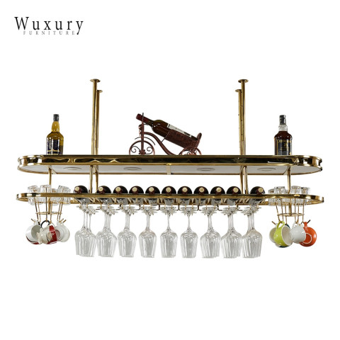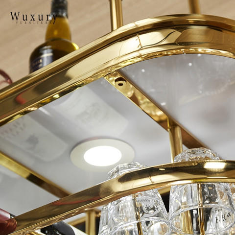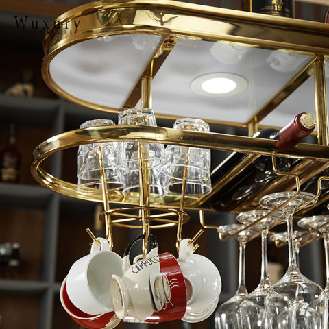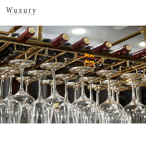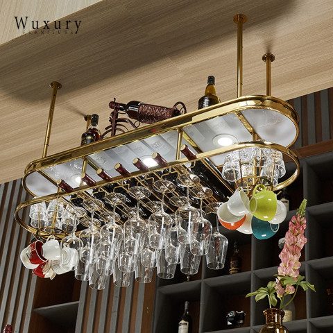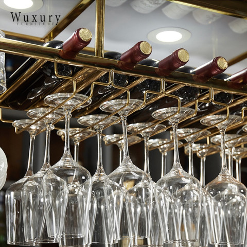 เติมบรรยากาศมุมบาร์ให้หรูหราแบบลักชัวรี ด้วยชั้นแขวนแก้วไวน์และชั้นวางขวดไวน์ดีไซน์โมเดิร์น ผลิตจากวัสดุคุณภาพงานนำเข้า โครงสแตนเลสสีทองสวยโดดเด่น พร้อมโคมไฟ LED ช่วยสร้างแสงละมุน เพิ่มความพรีเมียมให้บ้าน ร้านอาหาร หรือเคาน์เตอร์บาร์ของคุณได้ทันที
