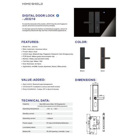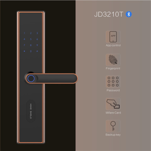 Digital Door Lock ปี 2025 รุ่น Model JD3210T สี Rose Gold รองรับ Bluetooth + Application + WiFi (ใช้งานผ่าน WiFi ได้ด้วยการเพิ่ม Gateway) ดีไซน์หรู โทน Rose Gold พร้อมผิวสัมผัสแบบด้าน (Matted) เคลือบสารพิเศษ ลดรอยนิ้วมือและคราบบนหน้าจอ ช่วยให้ตัวเครื่องดูใหม่อยู่เสมอ และเพิ่มความเป็นส่วนตัวด้วยการลดโอกาสการเดารหัสจากรอยกดบนจอ