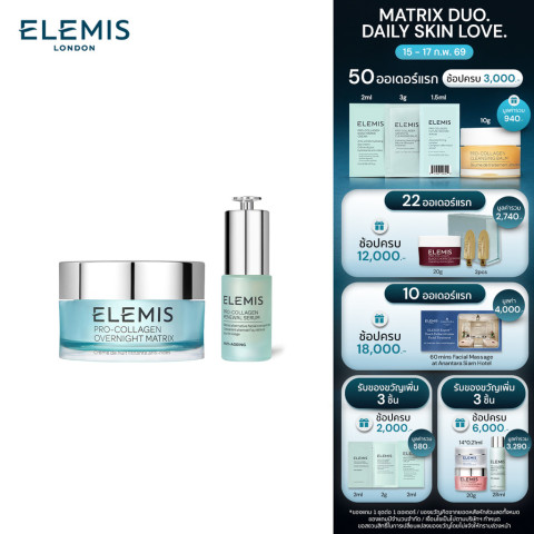 Elemis Overnight Matrix & Renewal Serum (เอเลมิส โอเวอร์ไนท์ เมทริกซ์ แอนด์ รีนิวัล เซรั่ม) เซ็ตบำรุงผิวระดับพรีเมียมที่ออกแบบมาเพื่อ “ฟื้นผิวตอนกลางคืน” และ “ดูแลริ้วรอยอย่างอ่อนโยนแบบทางเลือกแทนเรตินอล” ให้ผิวดูเรียบเนียน แน่นกระชับ ชุ่มชื้น และตื่นมาพร้อมความสบายผิวในทุกเช้า เหมาะสำหรับผิวทุกประเภท