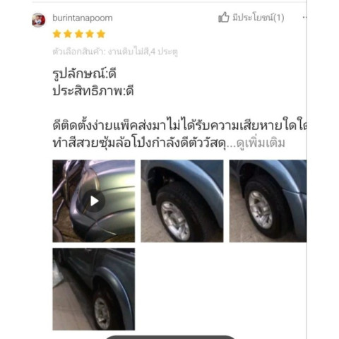 จำนวนชิ้นต่อชุด: 6 ชิ้น (คิ้วล้อ 4 ชิ้น + คิ้วปลายกันชน 2 ชิ้น)