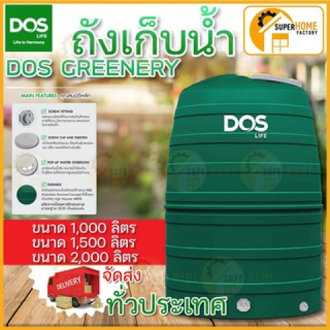 ส่งทั่วไทย ถังเก็บน้ำบนดิน DOS GREENERY ECO-/GR ขนาด 1000L / 1500L / 2000L ถังเก็บน้ำดอสคุณภาพสูง วัสดุ Food Grade ปลอดภัยสำหรับการใช้งานในบ้านและอาคาร พร้อมดีไซน์ทึบแสงช่วยลดการเกิดตะไคร่น้ำ เหมาะสำหรับสำรองน้ำใช้ได้อย่างมั่นใจ