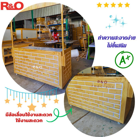 roacrylic เคาน์เตอร์คีออสไม้สนแท้ ท็อปกระเบื้อง เคาน์เตอร์พร้อมใช้งาน ดีไซน์โดดเด่น แข็งแรง เหมาะทั้งตั้งร้านประจำและออกบูธอีเวนท์ เพิ่มความเป็นมืออาชีพให้หน้าร้านของคุณในทันที ด้วยวัสดุไม้สนแท้และท็อปกระเบื้องที่เช็ดง่าย กันน้ำ กันคราบ