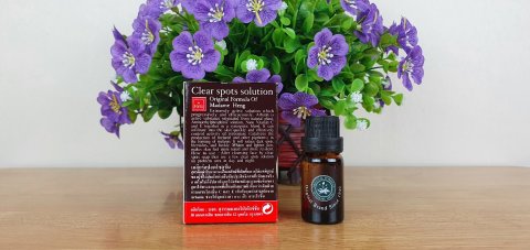 หลังทำความสะอาดผิวหน้า แต้ม Clear Spots Solution บางๆ บริเวณที่เป็นฝ้าหรือรอยดำ