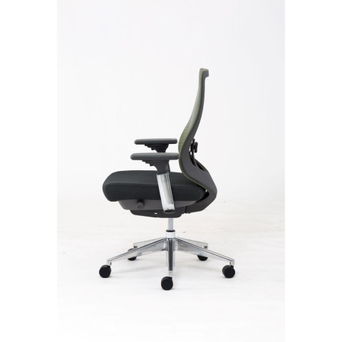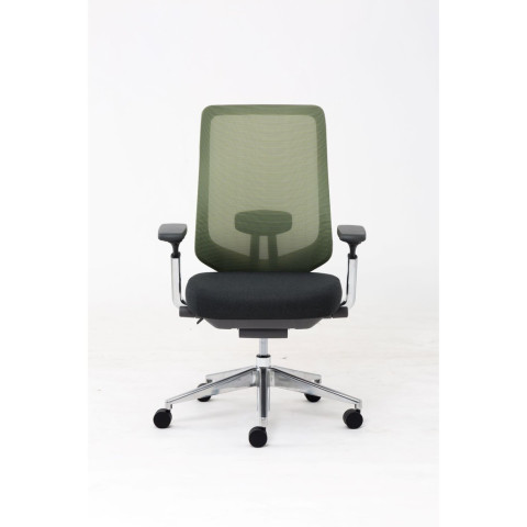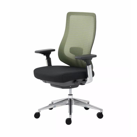 พนักพิง: โครงไนลอน + อะลูมิเนียม หุ้มผ้าตาข่ายสีเขียว / มีอุปกรณ์รองรับกระดูกสันหลัง ปรับความสูงได้