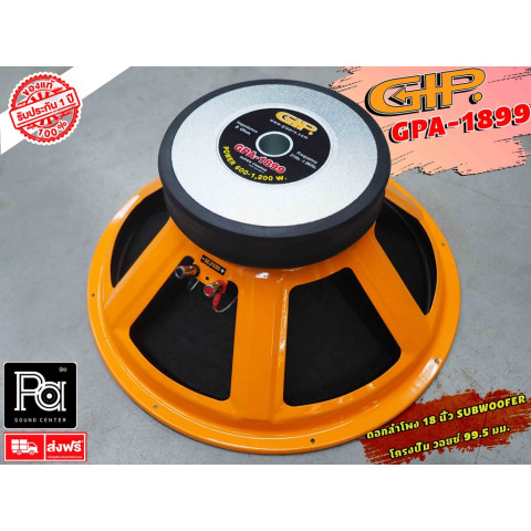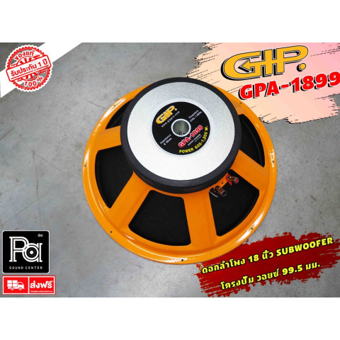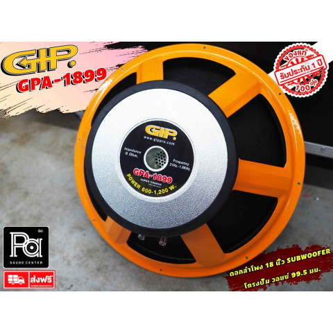 GIP GPA-1899 ดอกลำโพง 18 นิ้ว (18" SUBWOOFER) ดอกซับวูฟเฟอร์พลังแน่นสำหรับงานเสียงกลางแจ้ง/งานอีเวนต์ และตู้ซับ 18 นิ้วที่ต้องการแรงปะทะย่านต่ำชัดเจน ให้เบสลึก หนัก แน่น ตอบสนองไว ด้วยวอยซ์คอยล์ขนาดใหญ่ 4 นิ้ว และแม่เหล็กสองชั้น ช่วยรองรับกำลังขับได้มั่นใจ พร้อมโครงปั๊มแข็งแรง ทนงานหนัก
