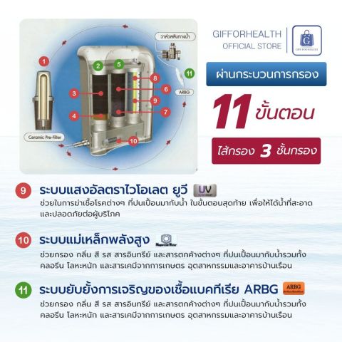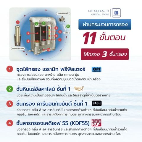 ระบบกรอง 11 ขั้นตอน ครอบคลุมทั้งตะกอน กลิ่น สี คลอรีน สารเคมี โลหะหนัก