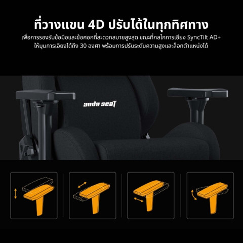 หุ้มวัสดุ PU ปรับได้ครบทั้ง สูง-ต่ำ, ซ้าย-ขวา, หน้า-หลัง และปรับความกว้าง เพื่อจัดท่านั่งให้ตรงกับโต๊ะและสรีระพนักพิงเอน 90°–160° + โยก 15°