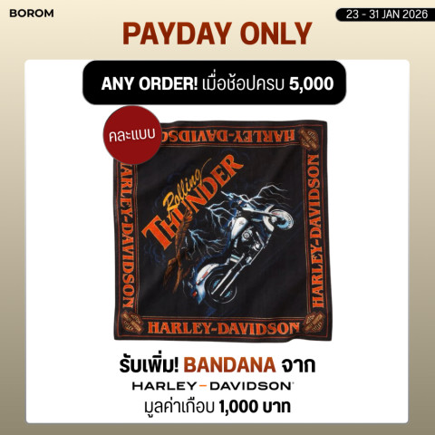 รับฟรี! BANDANA จาก HARLEY-DAVIDSON® ดีลพิเศษเฉพาะช่วง PAYDAY 23–31 Jan 2026 สำหรับสายช้อปที่อยากได้ของแถมลิมิเต็ดแบบคุ้ม ๆ เพียงทำตามเงื่อนไขก็รับของพรีเมียมจากแบรนด์ระดับตำนานกลับบ้านได้ทันที