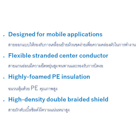 จุดเด่น: ม้วนขดง่าย ยืดหยุ่นสูง ทนบิด/โค้งงอ สัญญาณไม่สะดุด