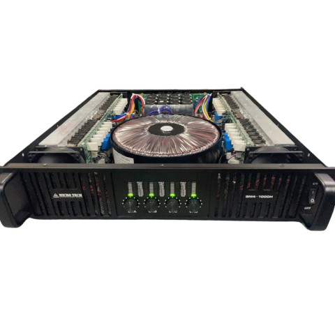 MICROTECH GM4-1000H POWERAMP 4CH เพาเวอร์แอมป์ระดับโปรสำหรับงานระบบเสียงที่ต้องการพลังขับสูง เสียงแน่น คุมดอกได้อยู่มือ เหมาะทั้งงานกลางแจ้ง เวที คาราโอเกะระดับมืออาชีพ และชุดเครื่องเสียงที่ต้องการความเสถียรต่อเนื่องตลอดงาน ด้วยวงจร CLASS H ให้กำลังขับเต็ม ประหยัดพลังงานและจัดการความร้อนได้ดี พร้อมหม้อแปลง RING POWER TRANSFORMER จ่ายไฟนิ่ง รองรับการใช้งานหนักได้มั่นใจ