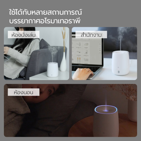 อโรมาเธอราพี ใช้ร่วมกับน้ำและน้ำมันหอมระเหย (แบบหยด) เพื่อให้กลิ่นหอมละมุน กระจายบรรยากาศให้ผ่อนคลาย