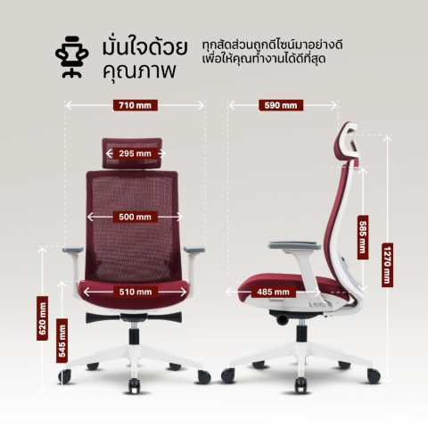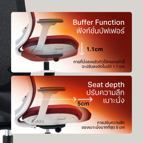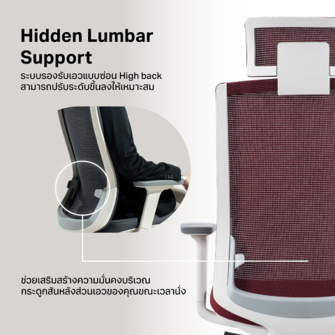Hidden Lumbar Support รองรับเอวแบบซ่อน (High Back) ปรับขึ้น-ลงได้ ช่วยพยุงกระดูกสันหลังส่วนเอวให้มั่นคง