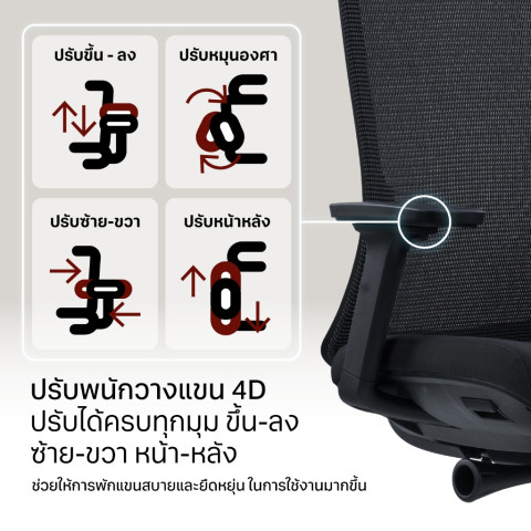 ที่วางแขนปรับ 4D ปรับได้ยืดหยุ่น รองรับแขน/ไหล่ ลดเกร็งระหว่างพิมพ์งาน