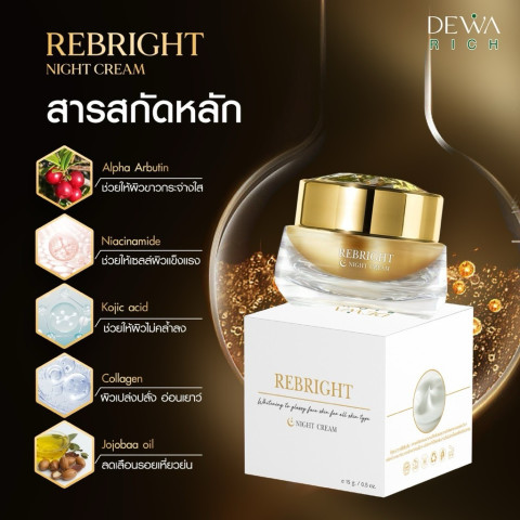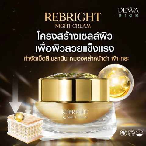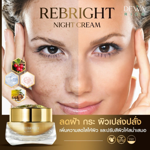 ดีว่าไวท์ ครีมทาฝ้าฟื้นฟูผิว (Rebrignt Whitening Night Cream) ไนท์ครีมบำรุงเข้มข้นสำหรับผู้ที่กังวลเรื่องฝ้า กระ ผิวหมองคล้ำ และริ้วรอย ช่วยฟื้นฟูผิวให้ดูขาวกระจ่างใสขึ้นอย่างเป็นธรรมชาติ พร้อมคืนความอิ่มฟู แน่น กระชับ ให้ผิวดูเรียบเนียนสม่ำเสมอในทุกเช้า