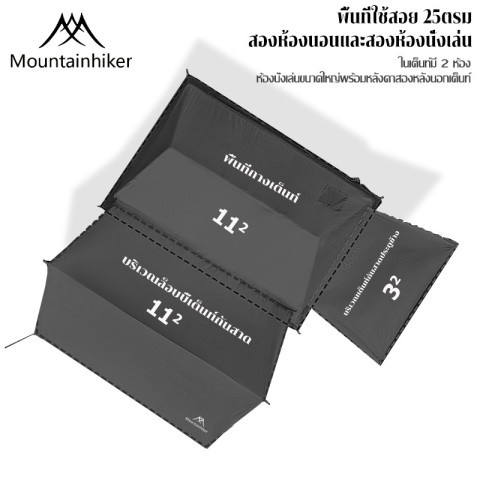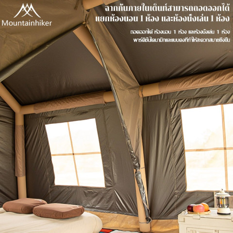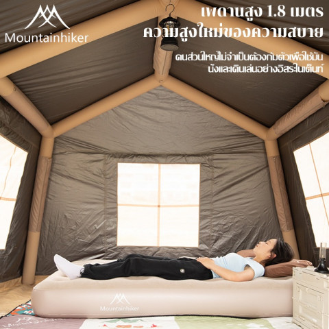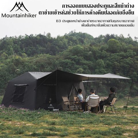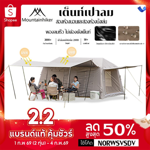 Mountainhiker เต็นท์เป่าลมอัตโนมัติ 2 ห้องนอน 1 ห้องนั่งเล่น เต็นท์แคมปิ้งไซซ์ใหญ่สำหรับสายครอบครัวและแก๊งเพื่อน กางง่าย รวดเร็วด้วยระบบท่อเป่าลมแทนเสาแบบเดิม ให้พื้นที่โปร่งสบาย แบ่งสัดส่วนชัดเจน อยู่ได้จริงทั้งทริปแคมป์ริมทะเล ปิกนิก หรือทริปสาย RV พร้อมคุณสมบัติกันน้ำ กันแดด และระบายอากาศดี ตอบโจทย์การใช้งานกลางแจ้งแบบจัดเต็ม