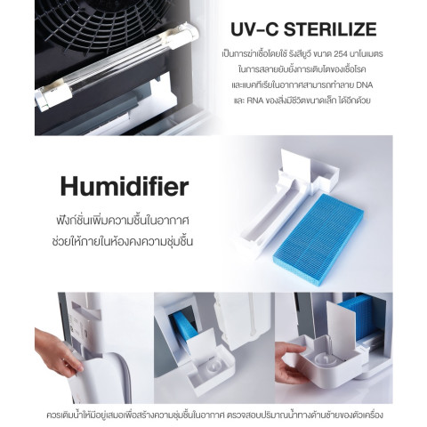 ปล่อยไอออนประจุลบ สูงสุด 10,000,000 ประจุ/ลบ.ซม. เพิ่มความสดชื่นและช่วยดักจับฝุ่นละออง