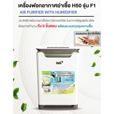 YAMADA เครื่องฟอกอากาศตั้งพื้น พร้อมระบบควบคุมความชื้น ฆ่าเชื้อโรค 99% สั่งการด้วยรีโมท H50 รุ่น F1 ราคา 13,962.00 บาท