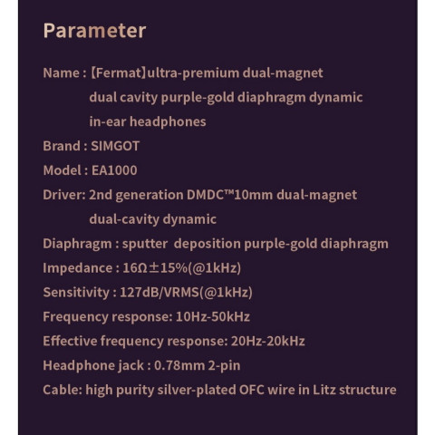 Simgot EA1000 หูฟังอินเอียร์ (ประกันศูนย์ไทย) หูฟังอินเอียร์ระดับพรีเมียมที่ออกแบบมาเพื่อคนรักเสียงเพลงตัวจริง ให้รายละเอียดเสียงคมชัด เวทีเสียงโปร่ง และบาลานซ์ที่ฟังได้หลากหลายแนว ทั้งป๊อป ร็อก แจ๊ส ไปจนถึงอะคูสติก เหมาะสำหรับใช้งานประจำวันและการฟังแบบจริงจัง พร้อมความสบายเมื่อสวมใส่ต่อเนื่อง