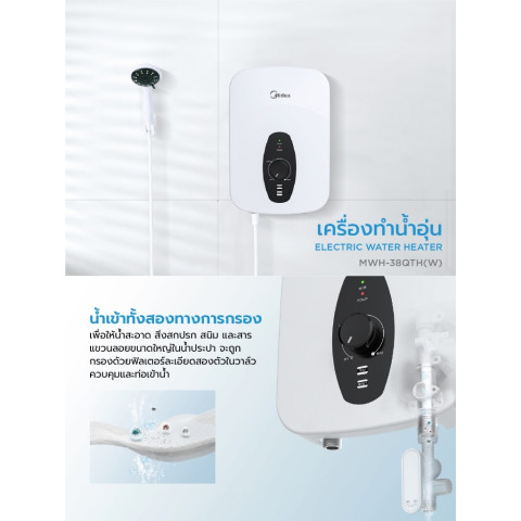 Midea เครื่องทำน้ำอุ่นพร้อมชุดฝักบัว รุ่น MWH-38QTH (3800W)