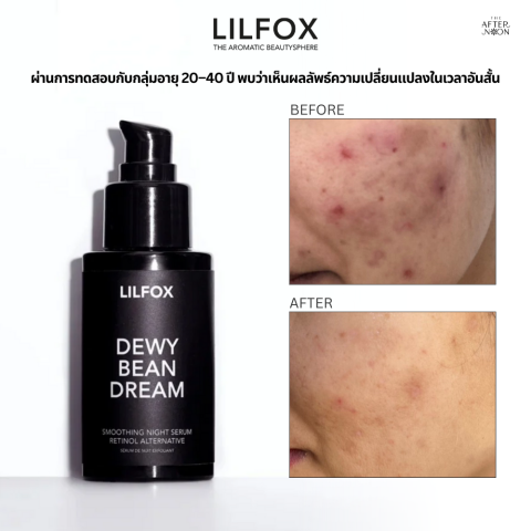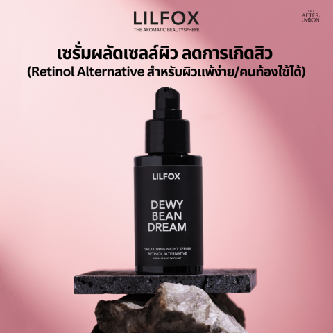 LILFOX Dewy Bean Dream 50ml | Night Serum เซรั่มบำรุงผิวข้ามคืนที่เป็นความหวังใหม่สำหรับคนผิวเริ่มมีริ้วรอย ผิวแพ้ง่าย กลัวการใช้เรตินอล หรือคุณแม่ตั้งครรภ์ที่ยังอยากดูแลผิวแบบมั่นใจ ด้วยแนวคิด Retinol Alternative ช่วยผลัดผิวอย่างอ่อนโยน ผิวดูเนียนใสขึ้นเหมือนทำทรีตเมนต์ 3 ชม. พร้อมเติมความชุ่มชื้นให้ผิวดูอิ่มฟู นุ่มละมุนตั้งแต่ตื่นนอน