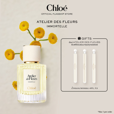 Chloé Atelier Des Fleurs Immortelle Eau De Parfum For Women น้ำหอมผู้หญิงกลิ่นฟลอรัลแอมเบอร์สุดละเมียดที่สื่อความหมายถึง “ความเป็นนิรันดร์” ด้วยคาแรกเตอร์เค็มนิดๆ อบอุ่นนุ่มลึก และเปล่งประกายแบบแสงแดดริมทะเลเมดิเตอร์เรเนียน เหมาะสำหรับคนที่อยากได้กลิ่นหรูเรียบแต่มีมิติ ใช้ได้ทั้งวันทำงานและโอกาสพิเศษ