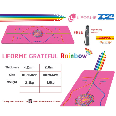 Liforme เสื่อโยคะพรีเมียม 4.2mm ลาย Rainbow Yoga Mat (พร้อมเส้นจัดแนว) เสื่อโยคะของแท้นำเข้าจากอังกฤษ ออกแบบมาเพื่อคนรักโยคะทุกระดับที่ต้องการ “ความหนึบ มั่นคง และสะอาด” ในทุกเซสชัน พร้อม ระบบเส้นจัดแนว ช่วยจัดท่าฝึกให้ถูกต้องแม่นยำ เพิ่มความมั่นใจทั้งท่ายืน ท่าค้ำ และท่าที่ต้องใช้การทรงตัว