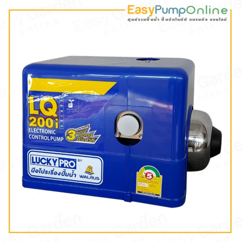 LUCKY PRO ปั๊มน้ำอัตโนมัติ WALRUS รุ่น LQ200i ขนาด 200 วัตต์ ปั๊มน้ำคุณภาพ Made in Taiwan แท้ 100% ออกแบบมาเพื่อบ้านที่ต้องการแรงดันน้ำ “นิ่ง-สม่ำเสมอ” เปิดใช้งานได้มั่นใจทุกก๊อก ด้วยระบบควบคุมแรงดันอัตโนมัติ ช่วยให้การอาบน้ำ ซักล้าง หรือใช้งานพร้อมกันหลายจุดทำได้ไหลลื่น พร้อมจุดเด่นเสียงเงียบและแรงดันดี ตอบโจทย์บ้านและทาวน์โฮมได้อย่างลงตัว