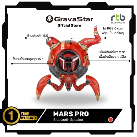 (ประกันศูนย์ไทย 1 ปี) GravaStar Mars Pro ลำโพงไร้สายดีไซน์ Sci‑fi ทรงหุ่นยนต์สุดโดดเด่น ที่ผสานความเท่แบบงานสะสมเข้ากับพลังเสียงแบบจัดเต็ม เหมาะทั้งวางเป็นไอเทมแต่งห้องและพกไปเปิดเพลงได้ทุกที่ เชื่อมต่อ Bluetooth ได้สะดวก ใช้งานง่าย ให้คุณสนุกกับเสียงเพลง เกม และหนังแบบมีมิติ พร้อมความมั่นใจด้วยประกันศูนย์ไทย 1 ปี