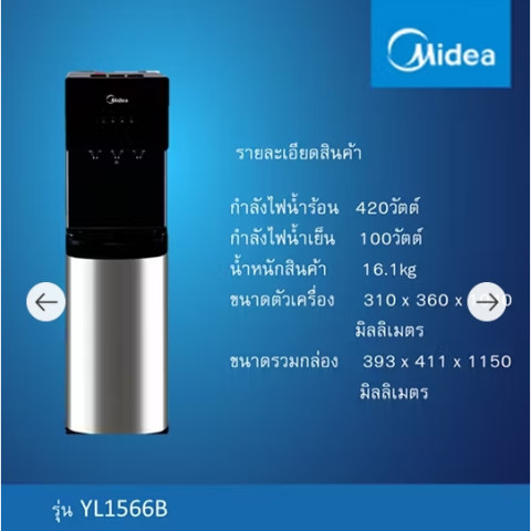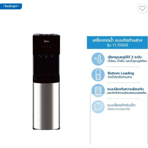 MIDEA ตู้กดน้ำ 3 อุณหภูมิ รุ่น YL1566B (ถังน้ำด้านล่าง) สีดำ/บรอนซ์ ในราคา 5,900.00 บาท ให้คุณสดชื่นได้ทุกวันด้วยน้ำดื่มที่กดได้ทันใจทั้ง น้ำร้อน น้ำเย็น และน้ำอุณหภูมิห้อง ตอบโจทย์ทั้งบ้าน ออฟฟิศ ร้านอาหาร คาเฟ่ และโฮมออฟฟิศ ด้วยดีไซน์สลิมประหยัดพื้นที่ พร้อมถังน้ำวางด้านล่างเปลี่ยนง่าย ไม่ต้องยกถังขึ้นสูง และยังมีพื้นที่ด้านบนให้วางแก้วหรือของใช้อเนกประสงค์ได้อย่างเป็นระเบียบ