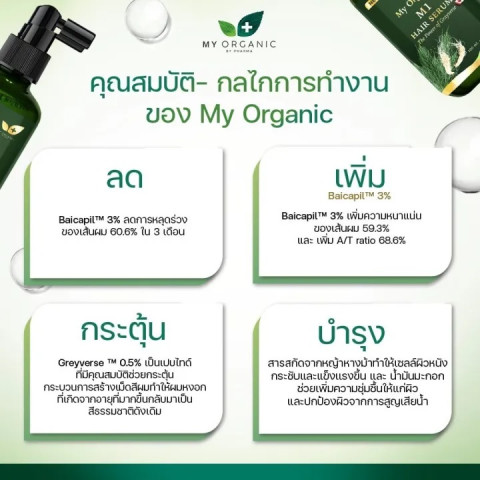 ตัวช่วยดูแลหนังศีรษะและเส้นผมแบบเข้มข้น สูตรใหม่ จาก My Organic M1 ที่ออกแบบมาเพื่อผู้มีปัญหา ผมหงอก ผมขาวก่อนวัย ผมร่วง ผมบาง คันหนังศีรษะ และรังแค ด้วยแนวคิดการบำรุงจากสารสกัดธรรมชาติและเปปไทด์เข้มข้น ช่วยฟื้นฟูรากผมให้แข็งแรง ลดการหลุดร่วง และกระตุ้นการงอกใหม่ให้ผมดูดกดำ เงางาม สุขภาพดีในขวดเดียว