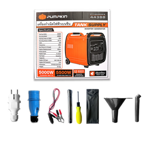 เพิ่มความมั่นใจก่อนใช้งานจริงด้วย 🧡เทสก่อนส่ง🧡 เครื่องปั่นไฟเบนซินระบบ INVERTER 4 จังหวะ ขนาด 5.5 KW สตาร์ทได้ 2 ระบบ ทั้งมือดึงและสตาร์ทไฟฟ้า จากแบรนด์ PUMPKIN รุ่น PTT-G5550EiS (44388) แหล่งพลังงานสำรองที่ทั้งนิ่ง เงียบ และให้ไฟฟ้าคุณภาพสูง เหมาะสำหรับใช้งานทั้งในบ้าน ร้านค้า งานช่าง และงานภาคสนามที่ต้องการความเสถียรของกระแสไฟเป็นพิเศษ เช่น คอมพิวเตอร์ ทีวี ตู้เย็น ปั๊มน้ำ เครื่องมือไฟฟ้า และอุปกรณ์อิเล็กทรอนิกส์ต่าง ๆ