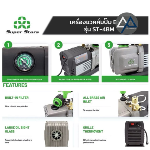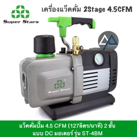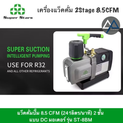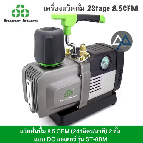 Super Stars แว็คคั่มปั๊ม 2 สเตจ รุ่น ST-4BM และ ST-8BM ออกแบบมาสำหรับงานแอร์และระบบทำความเย็นโดยเฉพาะ ให้กำลังดูดสูง สร้างสูญญากาศได้ลึก ทำงานรวดเร็ว มอเตอร์ DC แบบไม่มีแปรงถ่านช่วยให้ทำงานเงียบ ทนทาน และประหยัดพลังงาน เหมาะสำหรับช่างแอร์ ช่างระบบทำความเย็น ไปจนถึงงานทดลองในห้องแล็บที่ต้องการความแม่นยำ