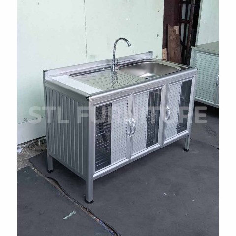 เติมฟังก์ชันการล้างจานและเตรียมอาหารให้ลงตัวมากขึ้นด้วย ตู้ซิงค์โครงอลูมิเนียม 120 cm มีกันตกหลัง (อ่างซ้าย) ดีไซน์ทนทาน ใช้งานสะดวก เหมาะสำหรับทั้งในครัวและบริเวณระเบียงที่มีโอกาสโดนฝนหรือความชื้นเป็นประจำ