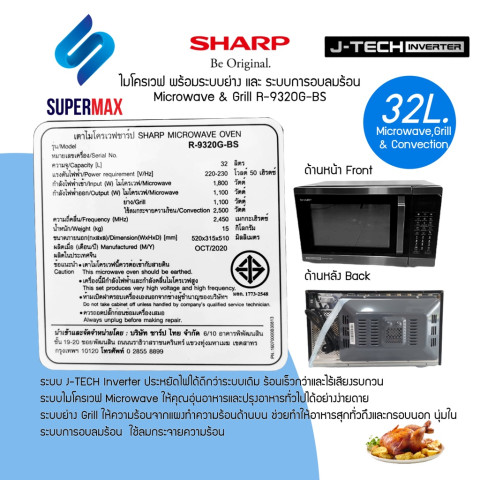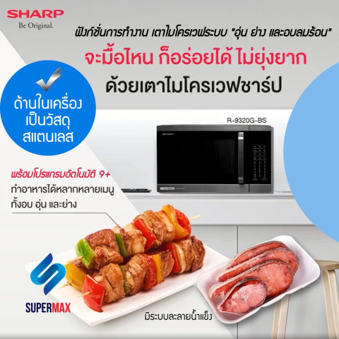ยกระดับประสบการณ์การทำอาหารในทุกวันด้วย SHARP เตาอบไมโครเวฟ 2 ระบบ ย่าง + เวฟ MAGIC GRILL ขนาด 32 ลิตร รุ่น R-9320G-BS ระบบ Inverter ดีไซน์สแตนเลสสวยหรู คุ้มค่าด้วยเทคโนโลยีประหยัดไฟ ให้คุณอุ่น อบ ย่าง และปรุงอาหารได้ครบจบในเครื่องเดียว ในราคาสุดคุ้มเพียง 6,993 บาท