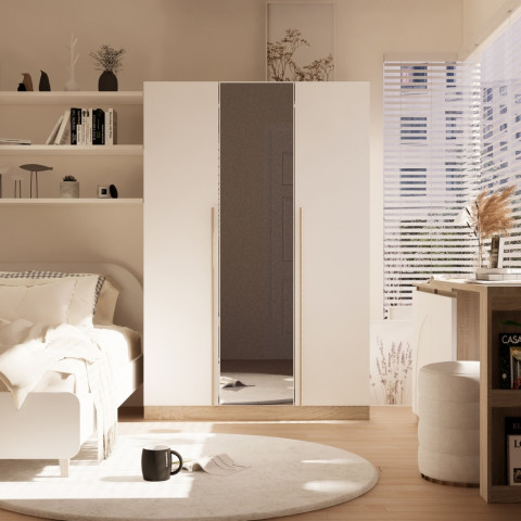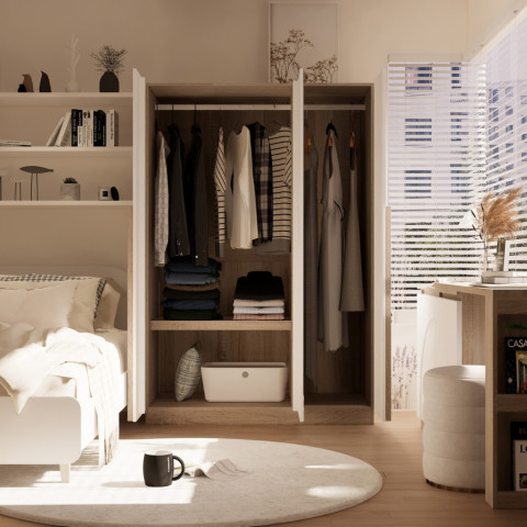 Looms ตู้เสื้อผ้าบานเปิด รุ่น REMUS-H ดีไซน์อบอุ่นสไตล์โมเดิร์น โทน สีโซลิดโอ๊คตัดหน้าบานสีขาว พร้อม มือจับไม้สีเข้ากัน จัดวางแล้วช่วยให้ห้องดูโปร่ง สบายตา เหมาะกับคอนโดหรือห้องนอนที่ต้องการตู้ขนาดกำลังพอดี แต่ฟังก์ชันครบ ใช้งานได้จริงทุกวัน ในราคา 6,110.00 บาท