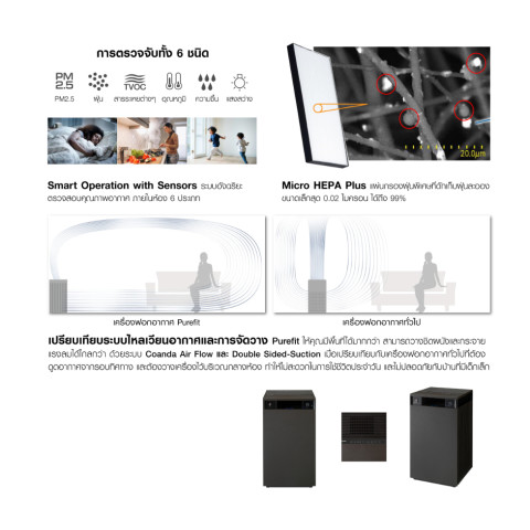 Micro HEPA Plus (HEPA 13) ดักจับฝุ่นขนาดเล็กได้ถึง 0.02 ไมครอน ได้สูงสุด 99% ช่วยลดฝุ่นละเอียดและสิ่งก่อภูมิแพ้