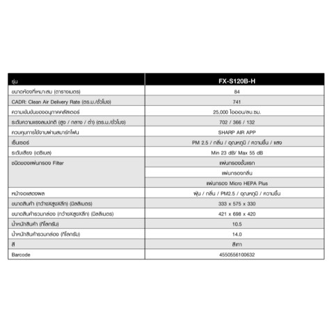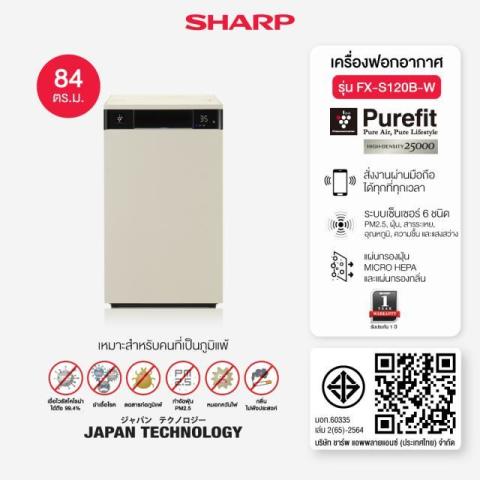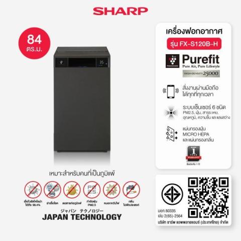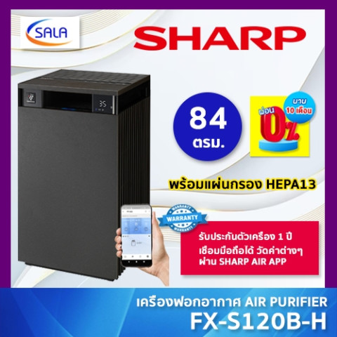 SHARP เครื่องฟอกอากาศ รุ่น FX-S120B (สีดำ) ยกระดับอากาศภายในบ้านให้สะอาดสดชื่น ด้วยดีไซน์สไตล์ Furniture Concept มินิมอล กะทัดรัด แต่ทรงพลัง ครอบคลุมพื้นที่ฟอกอากาศได้มากกว่า 84 ตร.ม. เหมาะทั้งห้องนั่งเล่น ห้องนอนใหญ่ โฮมออฟฟิศ หรือคอนโดพื้นที่กว้าง พร้อมเชื่อมต่อมือถือและระบบเซ็นเซอร์อัจฉริยะ ตรวจวัดคุณภาพอากาศแบบเรียลไทม์ เพื่อการดูแลสุขภาพของทุกคนในบ้านอย่างมั่นใจ