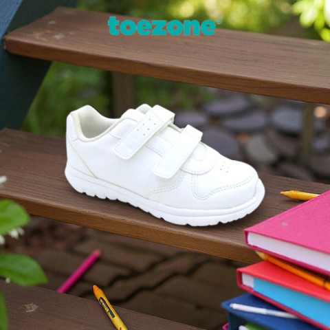 เติมเต็มลุคใส่ไปโรงเรียนของเจ้าตัวเล็กด้วย Toezone รองเท้านักเรียน รุ่น DUKE SCHOOL CH/YT ALL WHITE รองเท้าผ้าใบสีขาวสุดคลาสสิกที่ออกแบบมาเพื่อเด็กๆ โดยเฉพาะ ทั้งนุ่มสบาย ใส่เดิน ใส่วิ่ง หรือทำกิจกรรมพละได้อย่างมั่นใจตลอดวัน