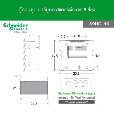ตู้คอนซูมเมอร์ยูนิต 6 ช่อง รุ่น Square D Classic รหัส S9HCL16 จำนวน 1 ใบ