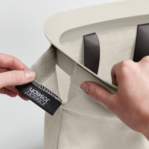 ถุงแต่ละช่องมี หูหิ้วทั้งด้านบนและด้านล่าง ช่วยยกออกจากตะกร้า เทผ้าลงเครื่องซักผ้าได้คล่องตัววัสดุคุณภาพ ดูแลรักษาไม่ยุ่งยาก